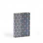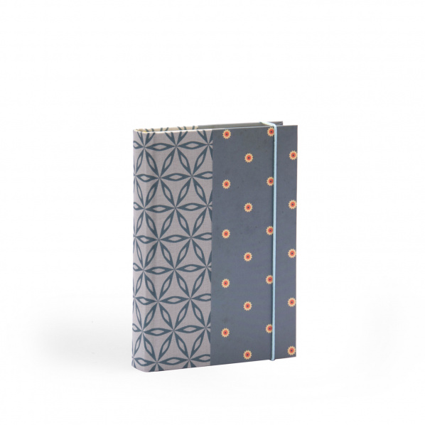 Als Einbände stehen fünf verschiedene, liebevoll aufeinander abgestimmte Musterkombination aus JACKIE Buntpapier und siebgedrucktem Leinen zur Auswahl. Farblich zu den Einbänden passende Rundgummis, die sich besonders gut greifen lassen, dienen zum Verschließen.