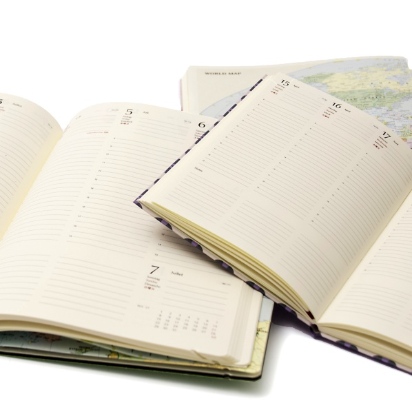Unsere handgefertigten Tageskalender (1 Tag / Seite) gibt es in zwei Formaten. Mit reichlich Platz für die täglichen Termine und Notizen werden sie gerne auch als Tagebuch verwendet.