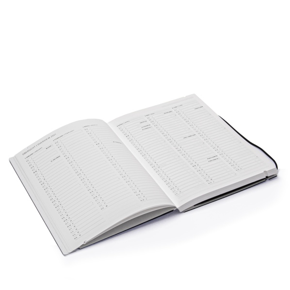 Diese fadengehefteten Kalender sind in zeitgemäß schlichter Schrift auf einem hochwertigen, naturweißen Papier gedruckt. Zur Ausstattung gehören zwei Lesebändchen und eine Einstecktasche im hinteren Buchdeckel. Ein integrierter Adressteil bietet außerdem genügend Platz für die wichtigsten Kontakte.