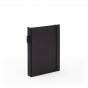 Der PURIST hat einen Einband aus Schwarzpappe, farbigem Leinenrücken - sechs Farben stehen zur Auswahl - und farblich passendem Rundgummi zum Verschließen. Jedes Buch wird aus feinem, cremefarbenen Schreib- oder Zeichenpapier fadengeheftet und ist in zwei Formaten und drei Lineaturen - blanko, liniert und in Punktraster - erhältlich. Ein selbstklebendes Etikett zum Beschriften liegt bei.
