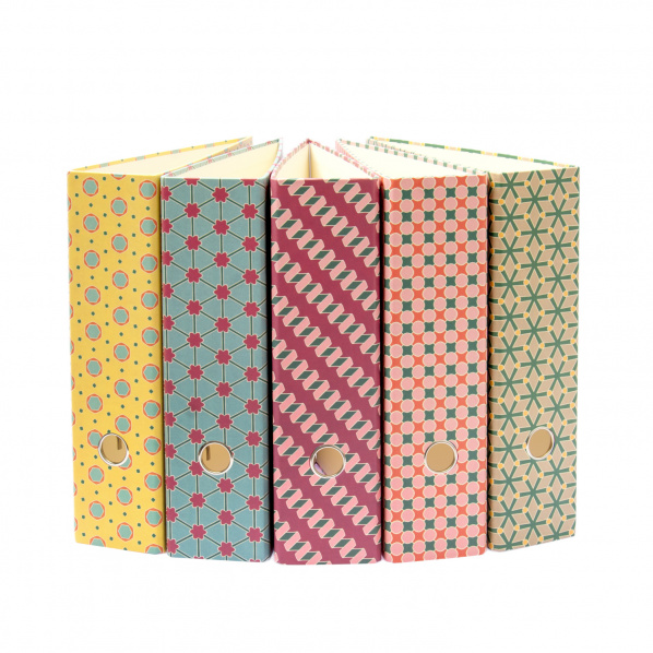 Mit unseren gemusterten Ordnern im Standardformat (geeignet für DIN A4) können alle Akten, Kontoauszüge, Fotos, Kochrezepte, gesammelten Kindergemälde und vieles andere mehr farbenfroh archiviert werden.